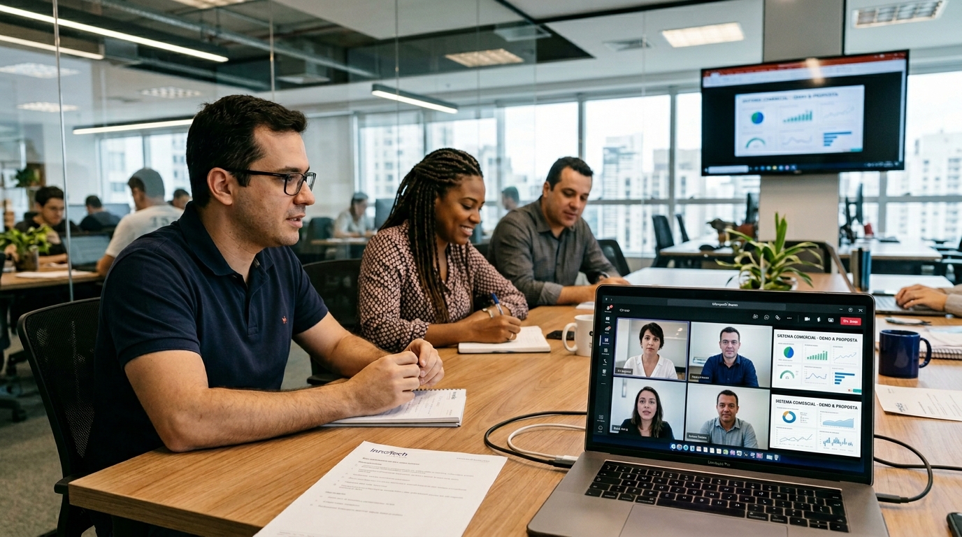 Estruturação conjunta de demonstrações, elaboração de propostas comerciais e apresentações técnicas — todo o material que você precisa para converter oportunidades em contratos.